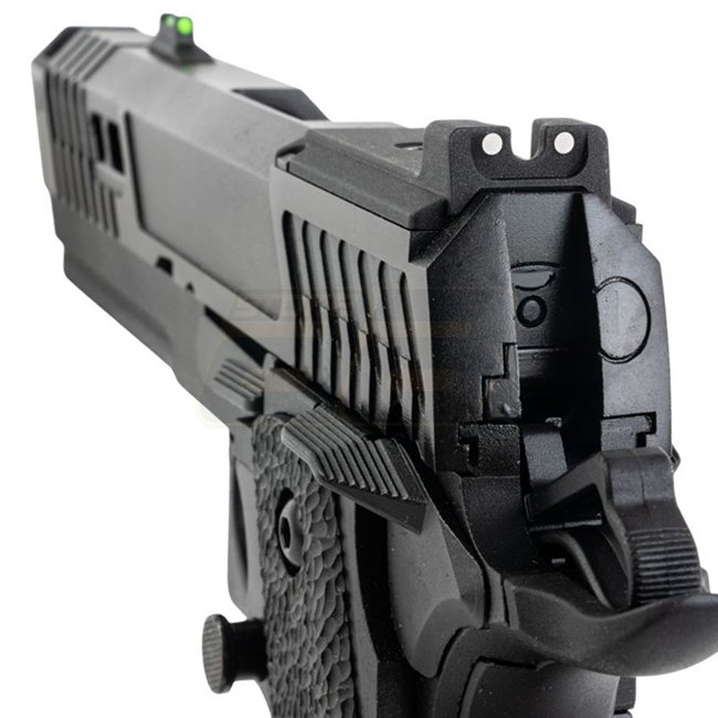 Die „Dark Viper“ basiert auf der bewährten Hi‑Capa-Plattform und verfügt über ein Dual-Power-System, das entweder CO2- oder Green‑Gas-Magazine nutzt, was sie für verschiedene Umgebungen flexibel macht. Sie überzeugt mit kräftigem Blowback, Vollmetall-Slide, vergrößertem Magwell und einer Optik‑Schnittstelle für schnelle Zielerfassung.