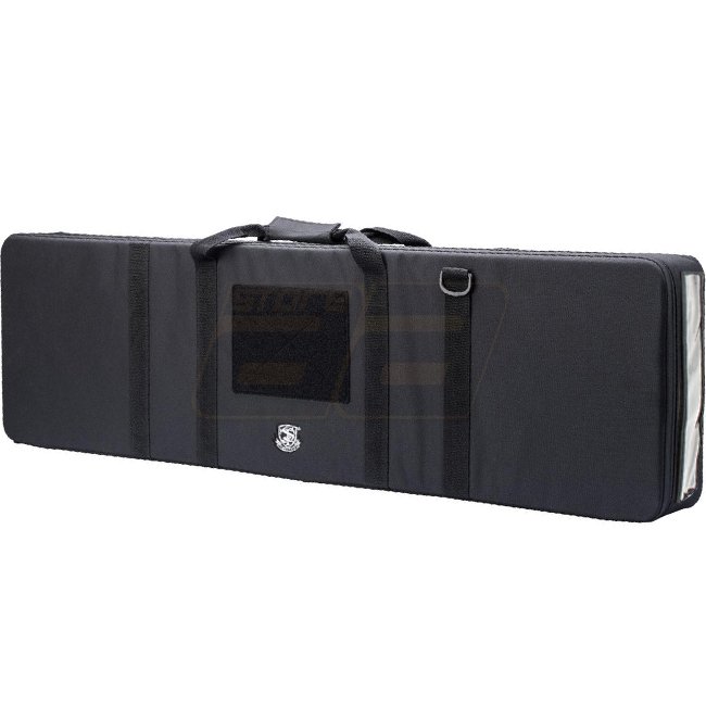 S&T Halbfeste Waffentasche in Schwarz, 110 cm lang, aus strapazierfähigem Nylon 900D gefertigt. Wiegt 2400 g und hat die Abmessungen 1100 x 300 x 100 mm. Innenabmessungen: 1085 x 285 x 85 mm.