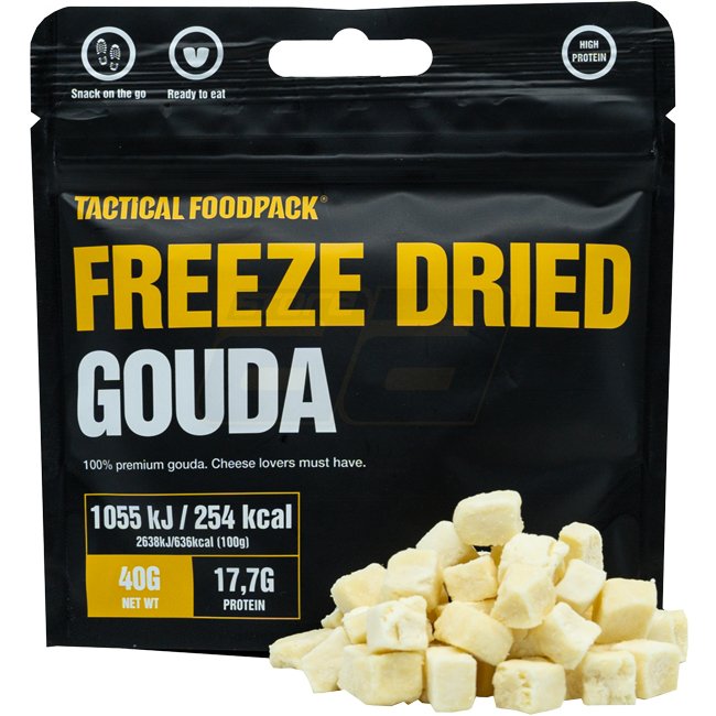 Die Tactical Foodpack Freeze Dried Cheese Bites stillen deinen Salzhunger und sind eine gute Kalzium- und Proteinquelle. Eine tolle Abwechslung zu den