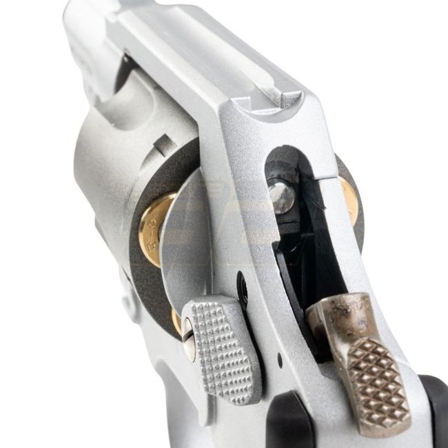 Der Tanaka S&W M&P 360 ist eine originalgetreue Nachbildung der bekannten S&W SC / PD J-Frame Revolver, die für ihre scandiumverstärkte Aluminiumkonstruktion bekannt sind. Diese Modellwaffe vereint Leichtigkeit mit robuster Erscheinung und realistischer Detailtreue.