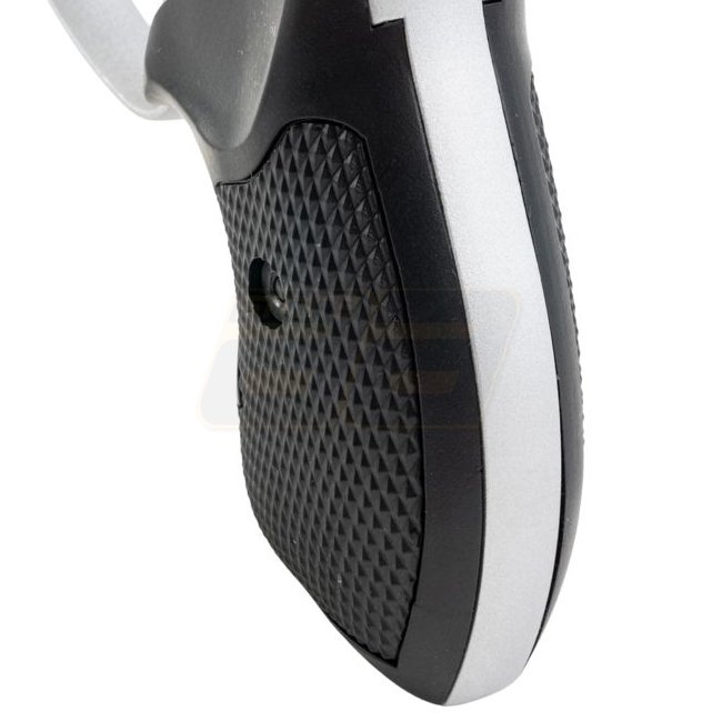Gefertigt aus schwerem ABS-Kunststoff mit Scandium-Finish ist diese Replik optisch kaum von Metall zu unterscheiden. Metallteile wie Hammer, Abzug und Trommel sorgen für ein realistisches Erscheinungsbild – perfekt für Sammler, Cosplay oder Filmrequisiten.