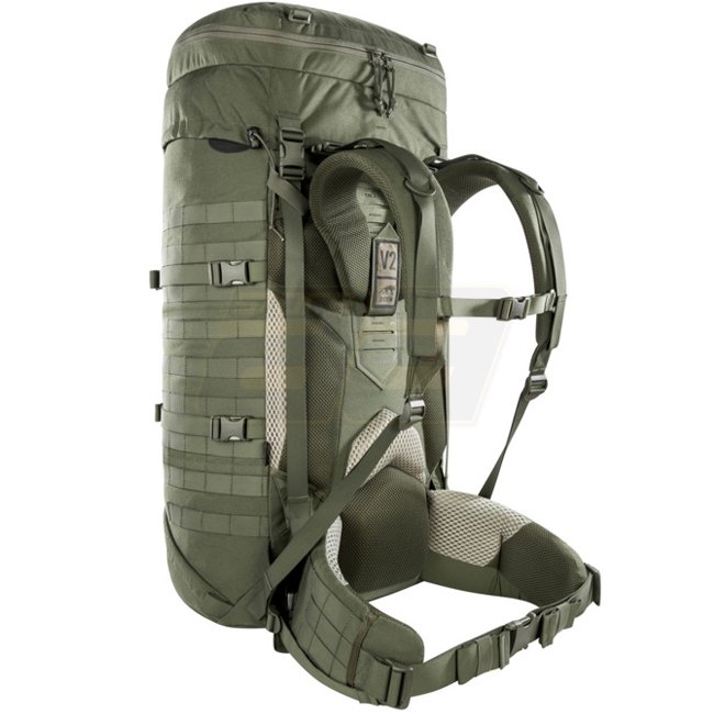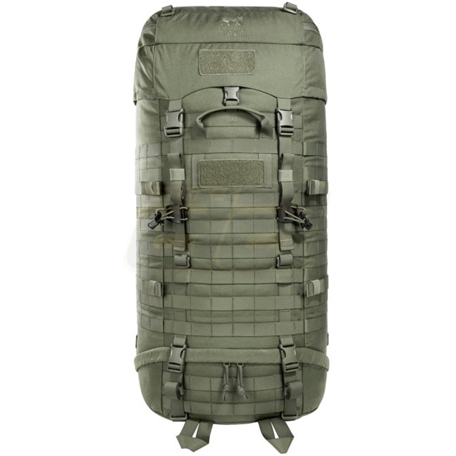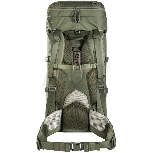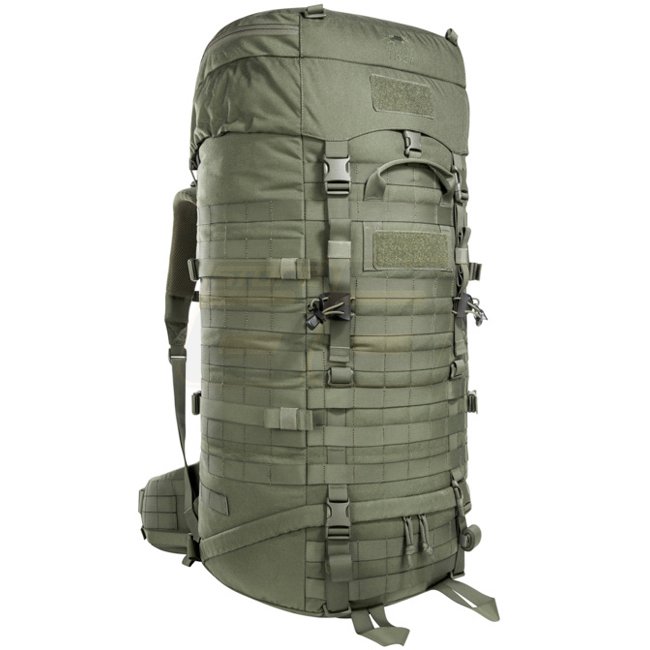 Tasmanian Tiger Base Pack 75 - Olive: Großer Mission-Rucksack mit modularen Erweiterungsmöglichkeiten. Bietet 75L Volumen, erweiterbar auf 90L. V2-Tragesystem, vorgeformte Kopfhöhle, unterteilte Fächer und weitere Merkmale für vielseitigen Einsatz.