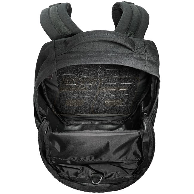 Tasmanian Tiger Modular Daypack L - Schwarz: 18L Tagesrucksack mit MOLLE-Hakenfeldern, flacher Reißverschlusstasche vorne und lasergeschnittenem MOLLE zur Ausrüstungsanpassung.