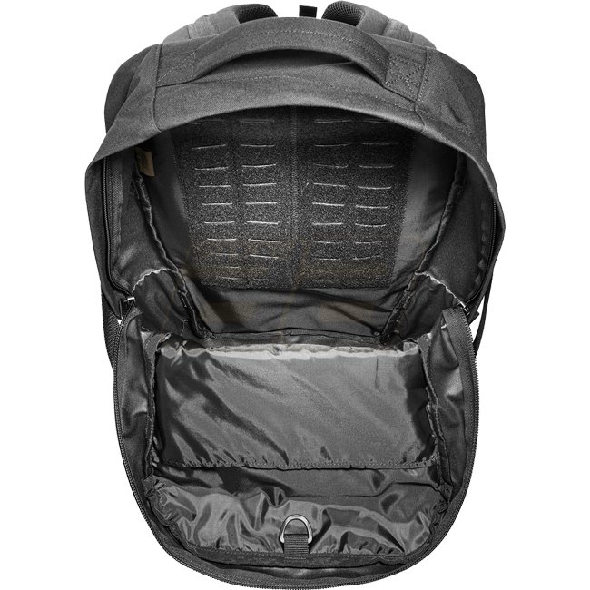 Modularer Daypack mit 23 Liter Volumen. Das Hauptfach des Tagesrucksacks ist an der inneren Rückwand mit MOLLE-Klett belegt und ermöglicht so die Bestückung mit Kletttaschen. Die Größe ist zudem für die Aufnahme eines 15.4?-Laptops ausgelegt. Das flache Reißverschluss-Frontfach eignet sich zur Unterbringung von Dokumenten, Laser Cut-MOLLE auf der Front und an den Seiten erlaubt die individuelle Erweiterung.
