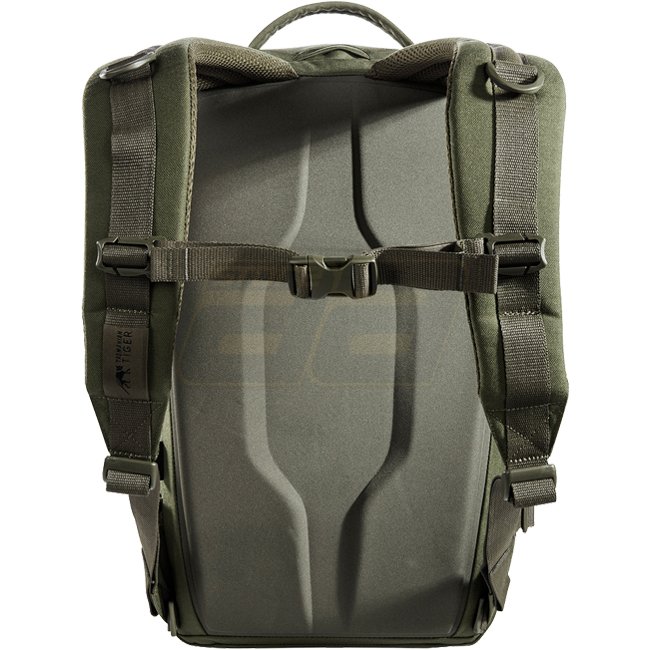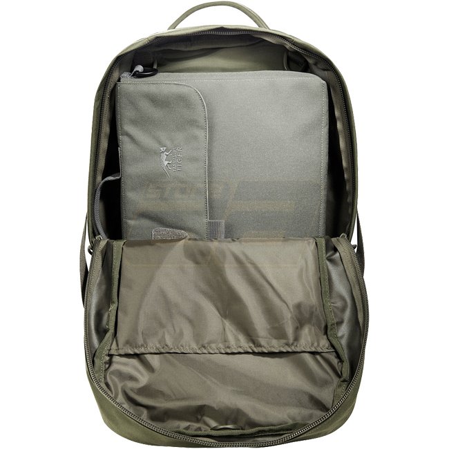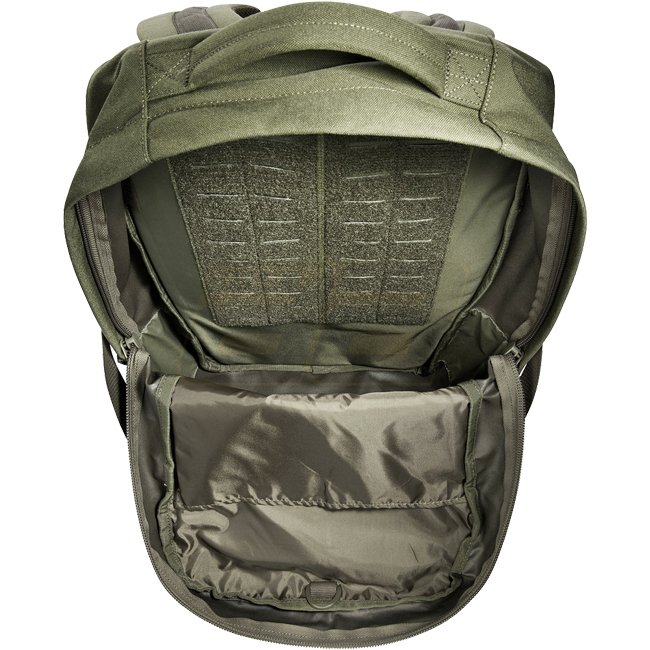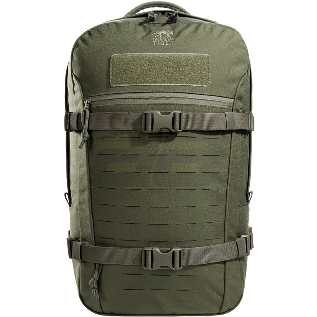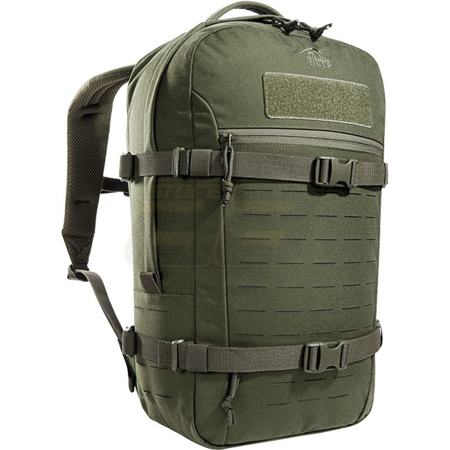 Tasmanian Tiger Modular XL Tagesrucksack in Olive. 23L Volumen mit MOLLE-Kompatibilität für Schlaufen-Taschen. Passt für 15,4" Laptop, mit verschiedenen Fächern und einem lasergeschnittenen MOLLE-System zur Anpassung.
