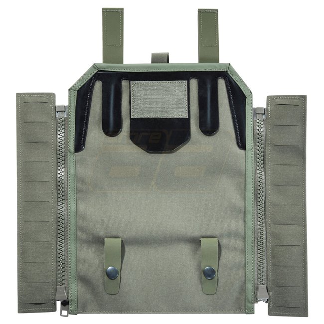 • Befestigung am Plattenträger mittels seitlicher Reißverschlüsse (Typ Vislon, Stärke #10, Länge 24 cm)