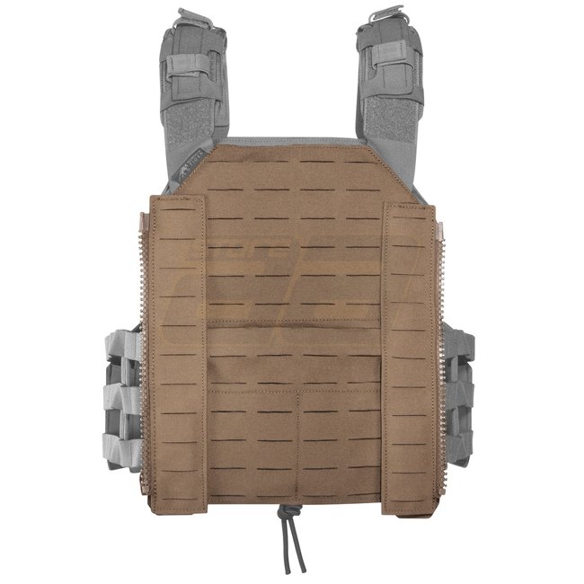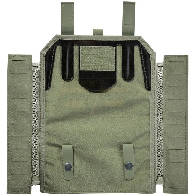 • Befestigung am Plattenträger mittels seitlicher Reißverschlüsse (Typ Vislon, Stärke #10, Länge 24 cm)