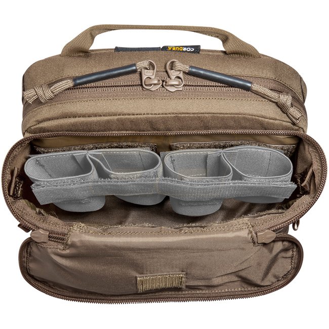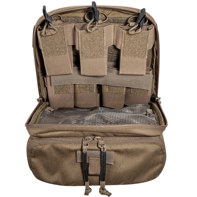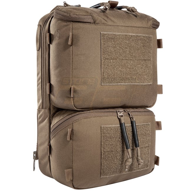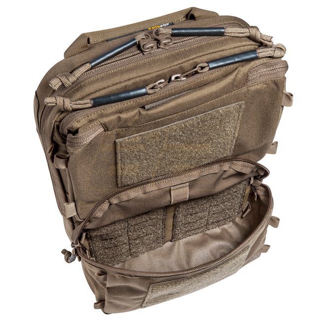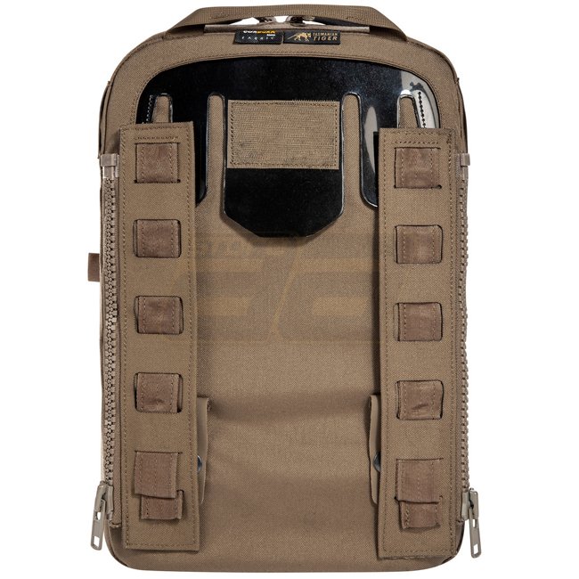 Der TT Operator Pack ZP ist konzipiert für den TT Plate Carrier QR LC ZP, die Befestigung erfolgt über seitliche Reißverschlüsse. Der Pack kann auch auf anderen am Markt befindlichen Plattenträgern mit entsprechender Reißverschlusslänge und -breite montiert werden. Zudem besteht durch den mitgelieferten Reißverschluss-MOLLE-Streifen die Möglichkeit, ihn auf Plattenträgern mit demselben MOLLE-Schema zu befestigen. Zur Befestigung an klassischen MOLLE-Bändern liegt ein zusätzlicher Adapter bei. Der Rucksack besitzt ein flaches Hauptfach, das mit einer Trinksystemvorbereitung versehen und dessen Rückwand mit MOLLE-Klett zur individuellen Bestückung belegt ist. Außerdem verfügt er über zwei große Fronttaschen. Die obere Fronttasche ist mit auswechselbaren Magazineinsätzen ausgestattet. Die modularen Bauteile können auch im Hauptfach befestigt werden.
