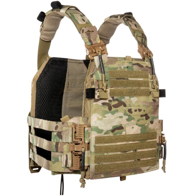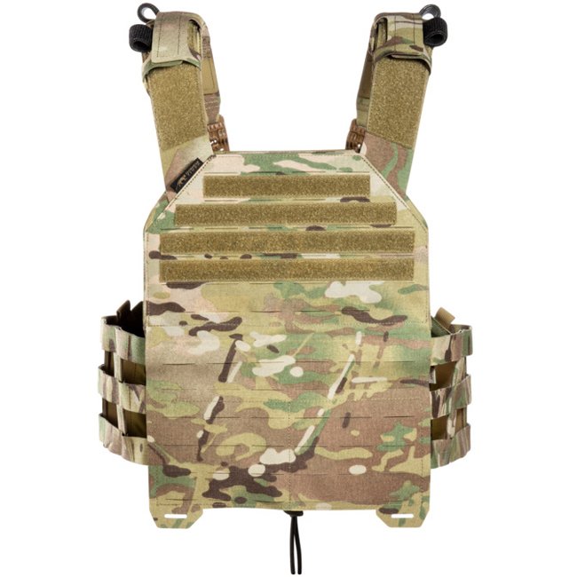 Leichter Plattenträger mit MOLLE-System in Lasercut-Ausführung. Durch die verwendete Technik bietet der Träger eine glatte, aufgeräumte Optik. Die Größe ist für SAPI-Platten (30 x 25 cm) ausgelegt. Versehen mit einem Schnell-Lösesystem durch ROC-Schließe.