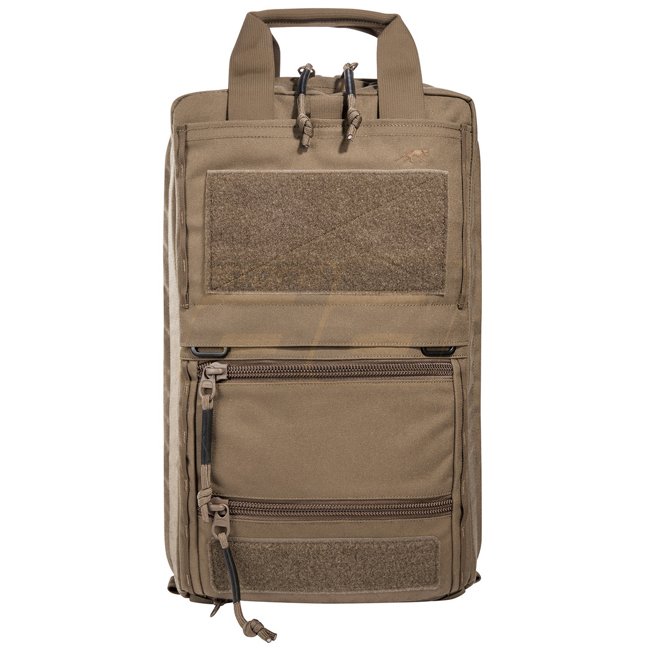Der TT Survival Pack bietet die passende Größe und Ausstattung für die wichtigsten Überlebens-Utensilien. Im komplett aufziehbaren Hauptfach stehen sechs Taschen unterschiedlicher Größe mit transparentem Deckel zur Verfügung, zwei davon können herausgenommen werden. Das Hauptfach ist zudem mit einer großen MOLLE-Klettfläche belegt, die eine individuelle Ergänzung ermöglicht. Im Bodenfach befinden sich eine zweiseitig verwendbare Regenhülle (eine Seite mit Streifen in Warn-Orange) sowie ein Tac Marker. Zwei flache Reißverschlussfächer auf der Front bieten sich zum Beispiel für die Unterbringung von Dokumenten an. Auf der Front können zudem zusätzliche Taschen oder Panels in die vorhandenen Haken eingehängt werden. Rucksack-Schultergurte sowie Tragegriffe lassen sich verstauen, wenn der Rucksack in Fahrzeugen untergebracht wird.