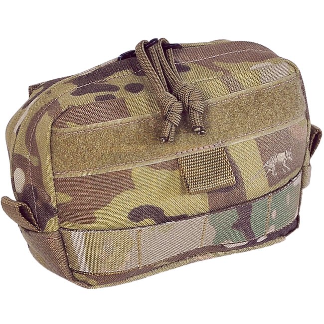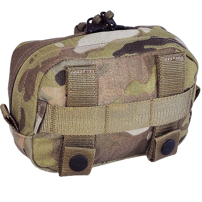 Zubehörtasche horizontal mit weit zu öffnendem Reißverschluss, Klettstreifen für Namensschild und MOLLE-Druckknopf-System.