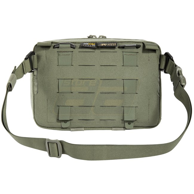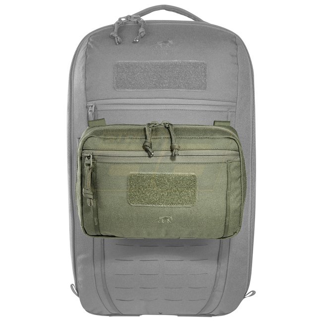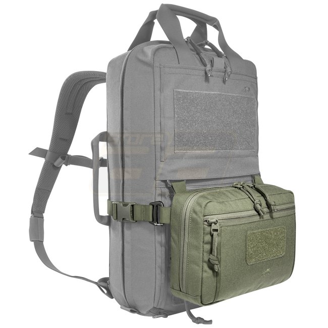 Die Tasche verfügt über ein abnehmbares MOLLE-Reverse-System zur Befestigung auf Plattenträgern und an Rucksäcken. Zudem kann sie mit Schlaufen am TT Survival Pack oder anderen MOLLE-Flächen mit entsprechenden Schnallen eingehängt werden. Auch ein Durchlass für eine 50 mm-Gürtelschlaufe ist vorhanden. Innen befinden sich flache Netztaschen, elastische Schlaufen und eine große MOLLE-Klettfläche.