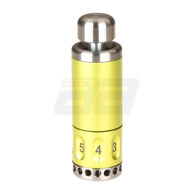Die Granate verwendet .209 Zündhütchen. Im Inneren des Körpers finden sich 8 Aussparungen zum Einsetzen der Zündhütchen. Der Zugang erfolgt nach Abschrauben der unteren Kappe. An der Außenseite des Körpers können die .209 Einstellungen von 1 bis 8 gesetzt werden. Die Granate ist standardmäßig auf "SICHER" eingestellt, nachdem sie auf die ausgewählte Position 1-8 aufgeschraubt und geworfen wurde, detonieren die Zündhütchen bei Kontakt mit einem harten Oberfläche.