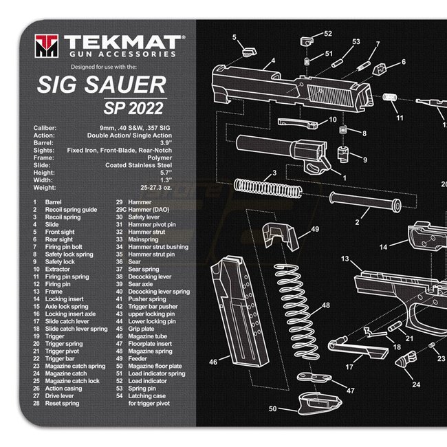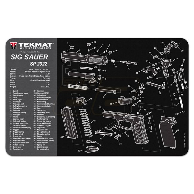 TekMat Reinigungs- & Reparaturmatte - SIG SP2022: Waffenwartungs- & Ausstellungsmatte, schlanke 3mm Dicke. Auch ideal als Arbeitsunterlage oder für den Schreibtisch. 43 x 28cm.