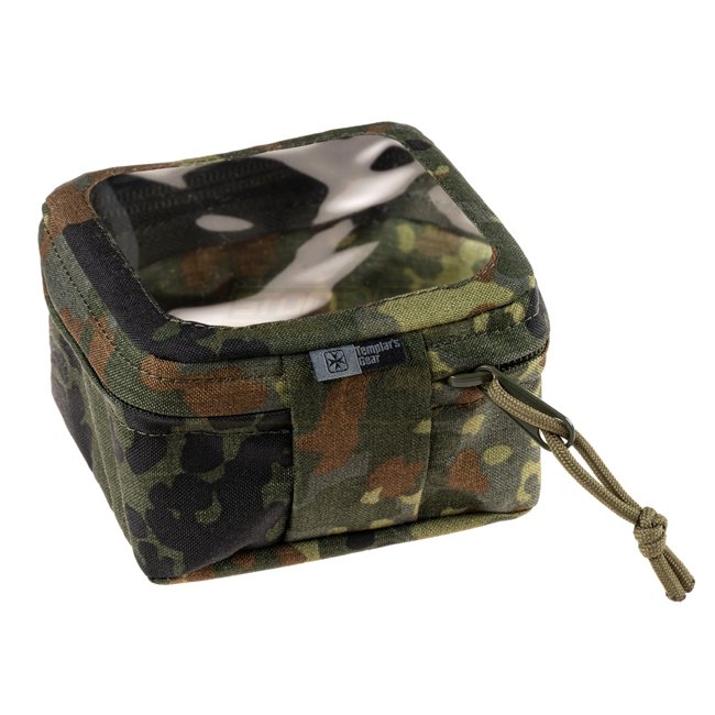 Die Templar's Gear Ammo Utility M 5FTD ist eine mittelgroße Tasche (12,5 x 12,5 x 7 cm), die speziell für Munition oder ähnliche Ausrüstungsgegenstände entwickelt wurde. Dank ihres transparenten oberen Fensters eignet sie sich ideal für den Einsatz auf dem Schießstand. Die Tasche besteht aus robustem Cordura 500D mit IRR-Behandlung und bietet Platz für bis zu: