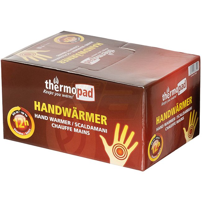 Thermopad Handwärmer: Heißt bis zu ca. 12 Stunden, Temperatur bis zu ca. 68°C, aktiviert durch Sauerstoff. Entsorgung im Restmüll. Abmessungen: 9 x 5,5 cm. Enthält Eisenpulver, Salz, Aktivkohle, Wasser, Vermiculit.
