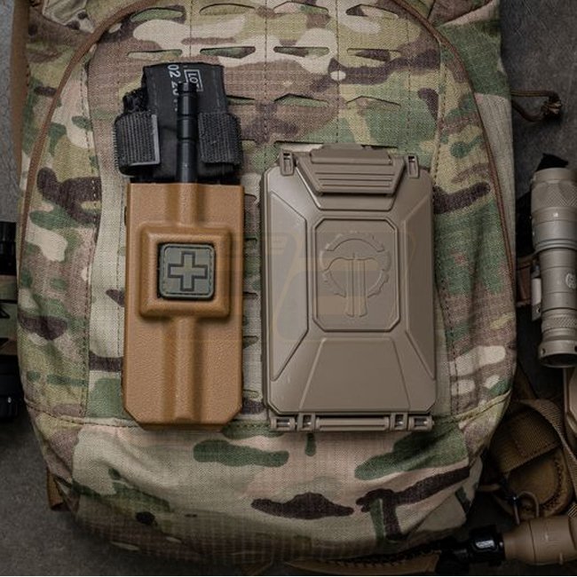 THYRM CellVault-5M - Dark Earth - Modulare Batterieaufbewahrung für verschiedene Batterietypen. Wasserdicht, MOLLE-kompatibel, abschließbarer Verschluss. Premium-Polymer. Abmessungen 16,5 x 91,4 x 5,0 cm. Gewicht 200g.