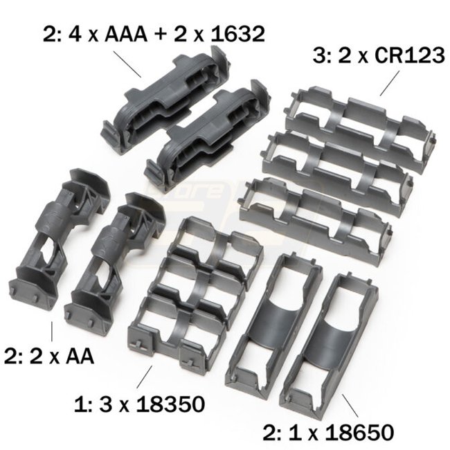 • Drei 2 x CR123 Inserts (auch 16650 Inserts genannt).