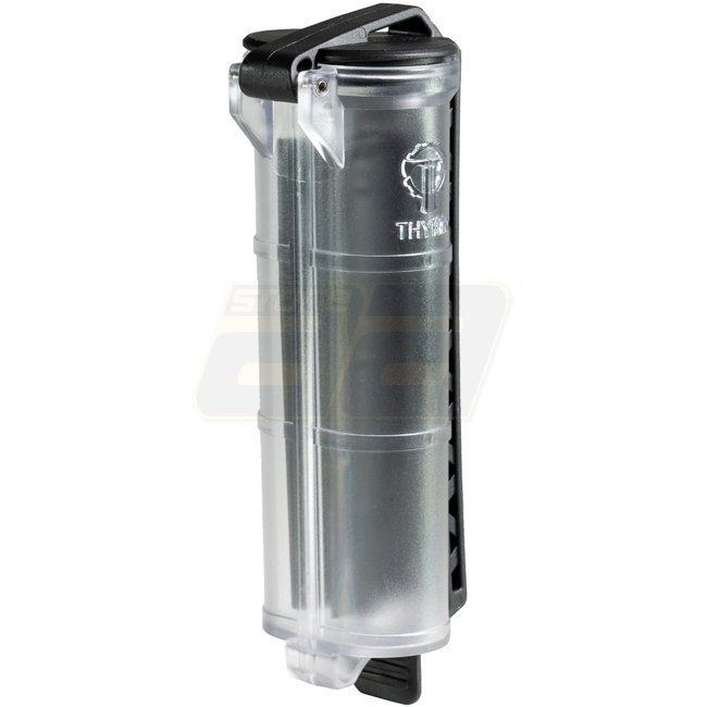 Kompakt und vielseitig THYRM CellVault XL Batterieaufbewahrung in Klar & Schwarz. Lagert Batterien, Überlebensausrüstung, Erste-Hilfe-Bedarf, Wertgegenstände und mehr. Abmessungen: 12,95 x 2,8 x 3,3 cm. Gewicht: 45g.
