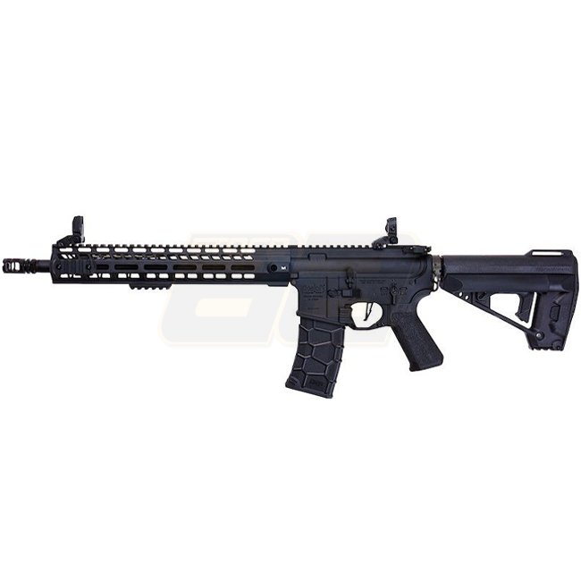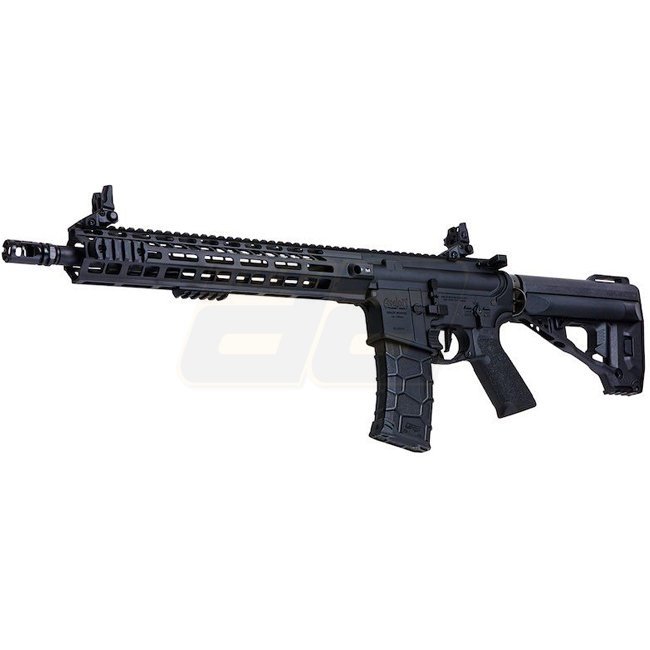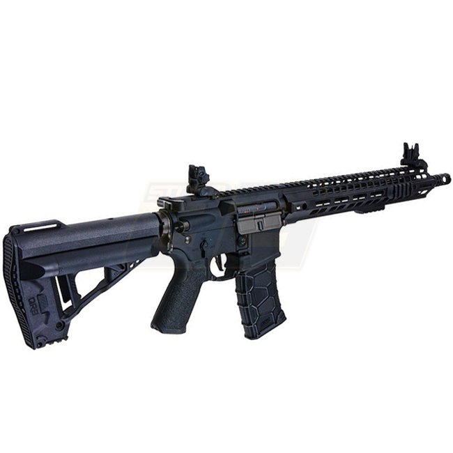 Dieses VFC Avalon Saber Carbine GATE Aster ETU AEG in Schwarz verfügt über eine Metallkonstruktion mit Polymer-Schaft und Pistolegriff. Zu den Merkmalen gehören ein Langmotor, eine Magazin kapazität von 120 Schuss, ein verstellbares Hop-Up und Schussmodi