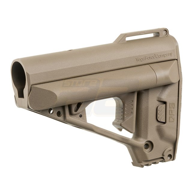 VFC QRS Stock - Tan: Mil-Spec Abmessungen, vielseitige Batteriekonkompatibilität.