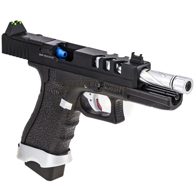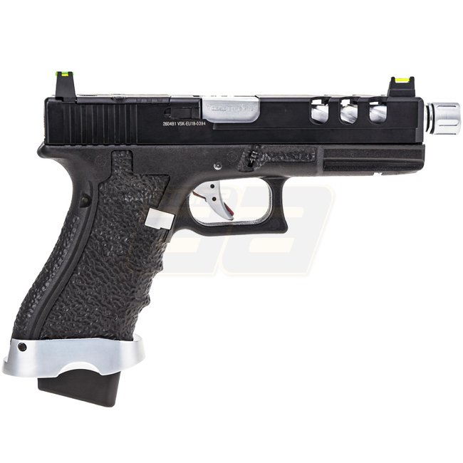 Vorsk EU18 Vented Gas Blow Back Pistole - Schwarz: Metall / Polymer, 21-Schuss Magazin, 220mm Länge, 760g Gewicht, 90mm Innenlauf, 320-340 FPS, Halbautomatisch & Vollautomatisch, 43,90-46,65m Schussreichweite, einstellbarer Hop Up. Paket umfasst Waffe und