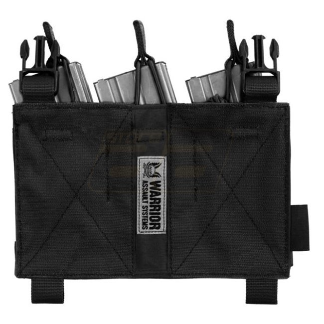 Abnehmbares MOLLE-Frontpanel zur sicheren Befestigung von drei Magazinen am Warrior's Recon Carrier (RPC). Ausgestattet mit Sicherungskordeln und MOLLE-Webbing für vielseitige Anpassungsmöglichkeiten.