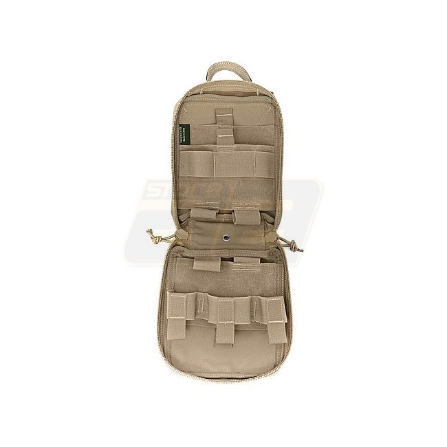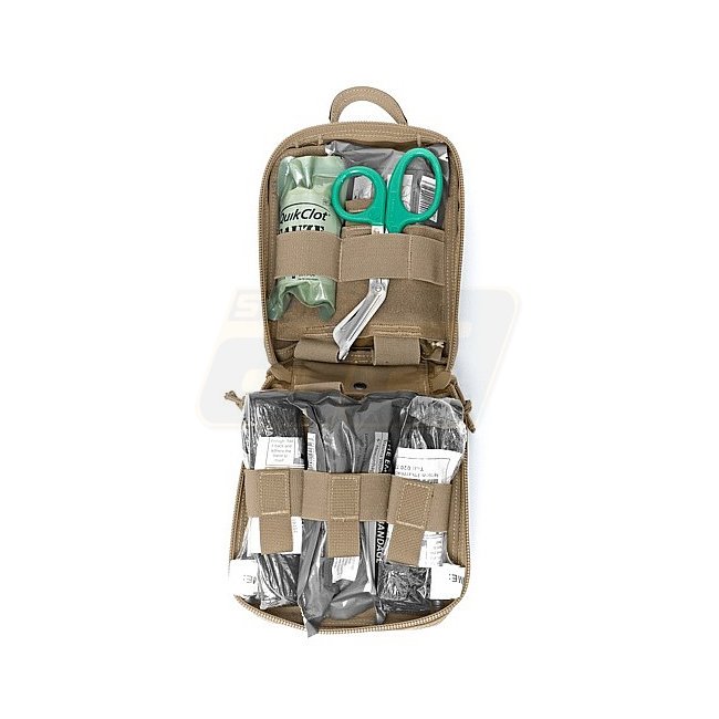 Elastische Fächer halten das medizinische Zubehör geordnet nach Priorität. Es passen 2 C.A.Ts, 2 Kompressionsverbände, 2 Quick Clot-Gazen, Atemhilfen, Schere und Chest Seals hinein.