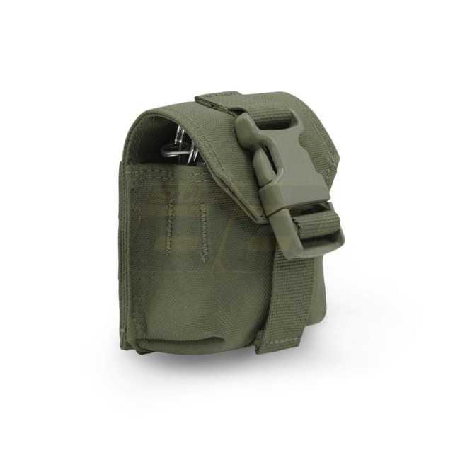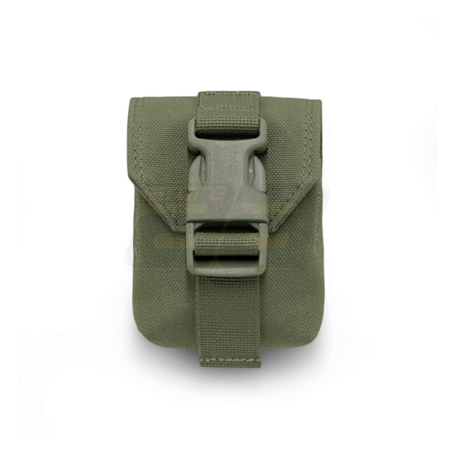 Kompakte und vielseitige Warrior Einzelgranatentasche Gen2 in Olive. MOLLE-kompatibel, perfekt für verschiedene Granaten.
