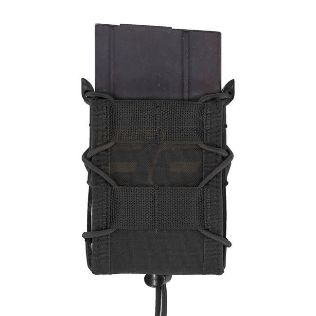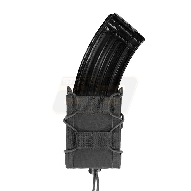 Die Warrior Single Quick Mag Tasche ist eine vielseitige Mehrzweck-Magazintasche, die verschiedene 5,56mm Magazine, einschließlich P-Mags, sowie 7,62mm x 39mm AK-Magazine, M14- und FAL-Magazine aufnehmen kann. Die Größenanpassung erfolgt über elastische Shock-Cords, die durch die Seiten der Tasche geführt sind. Für zusätzliche Sicherheit können optionale Bungee-Retention-Tabs angebracht werden, ähnlich wie bei den Warrior Assault Systems Open Mag Pouches.