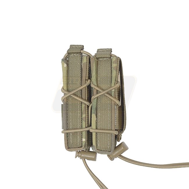 Die Warrior Single Quick Mag Tasche ist eine vielseitige Magazintasche, die für verschiedene 5.56mm Magazine wie P-Mags sowie 7.62mm x 39mm AK-Magazine, M14- und FAL-Magazine geeignet ist. Diese Version verfügt über eine zusätzliche, vollständig anpassbare Pistolenmagazintasche an der Vorderseite, die Platz für verschiedene Pistolenmagazine, Taschenlampen, Multi-Tools und Schlagstöcke bietet. Beide Taschen können mithilfe seitlich geführter elastischer Shock-Cords in der Größe angepasst werden. Optional sind Bungee-Retention-Laschen für zusätzliche Sicherheit verfügbar.