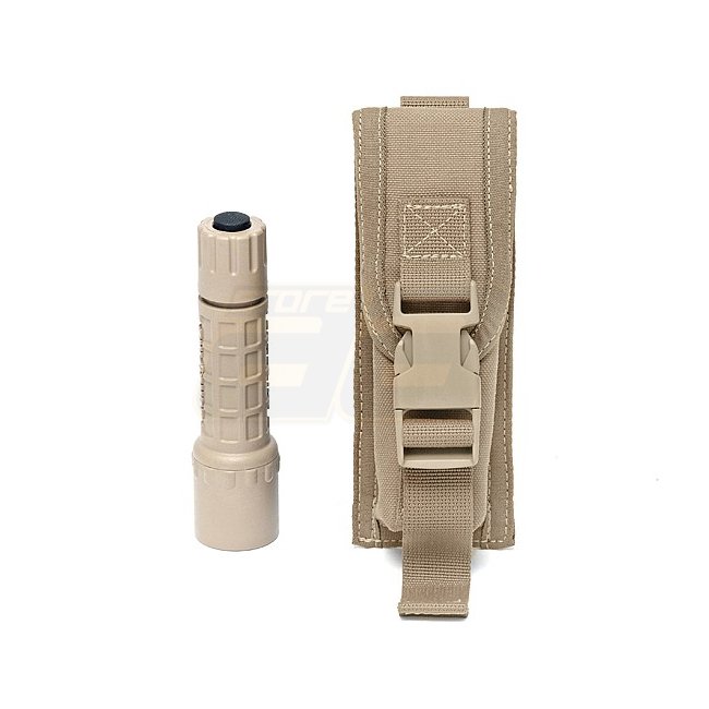Kompakte Warrior kleine Taschenlampentasche in Coyote-Farbe, kompatibel mit MOLLE-System für eine praktische Befestigung.