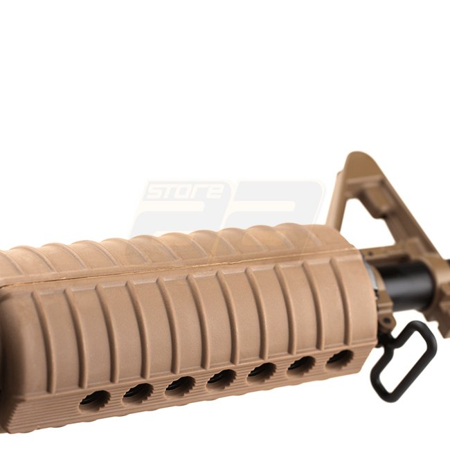 Wir M4A1 Gas Blow Back Gewehr - Wüste: Metall / Polymer Griff, 30 Schuss Magazin, 850mm Länge, 3000g Gewicht, 360mm Innenlauf, 14mm CW Mündung Gewinde, 410-430 FPS. Halbautomatischer und vollautomatischer Schussmodus, Reichweite von 56,25-58,99m, einstell