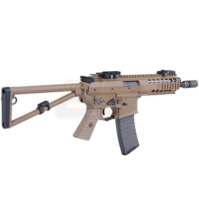 Die KAC PDW (Personal Defense Weapon) von WE erreicht in der Version mit verkürztem Aussenlauf gerade mal eine Länge von 43,5cm beziehungsweise 66,7cm bei ausgeklapptem Schaft bei nicht einmal zwei ein halb Kilo. Mit dem neuen Open Bolt System kann WE einen wichtigen Schritt in Richtung Authentizität machen: In den älteren WE Modellen war bei geöffnetem Verschluss jeweils ein Messingrohr ersichtlich, was optisch nicht zu den sonst sehr realistischen Waffen passte. Das Resultat ist eine rundum zufriedenstellendes Gas Blow Back Rifle wie man es sich von WE gewohnt ist – inklusive realistischem Verschluss und starkem Rückstoss.