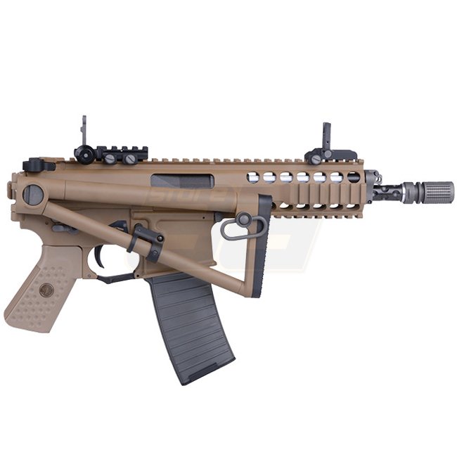 Beim Original handelt es sich um ein Experiment der Firma Knight’s Armament Company wobei ein neues 6mm Kaliber zur Anwendung kommt. Das Ziel dabei ist es, ein Gewehr zu schaffen welches weniger für den offensiven Einsatz gedacht ist sondern vielmehr für motorisierte Kräfte wie etwa Lastwagenfahrer oder Panzerbesatzungen. Entsprechend sollte das Projektil auch nur defensiv auf mittlere Distanzen wirkungsvoll sein. Damit die KAC PDW zur bestehenden M-Serie passt sind die Magazine kompatibel und die Funktionen weitestgehend deckungsgleich.