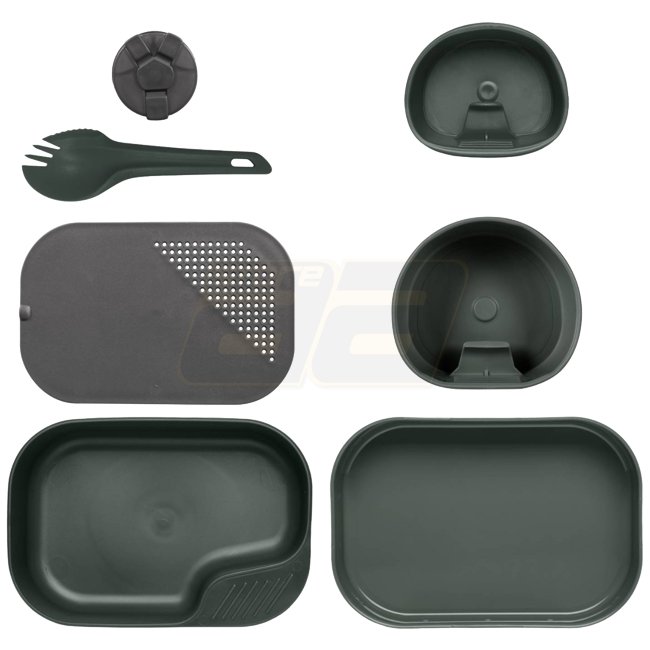 Voll ausgestattet Beinhaltet das Camp-a-Box Set einen Teller mit Deckel, Fold-A-Cup® Big, Fold-A-Cup®, Schneidebrett, Shaker und Spork. Das Camp-A-Box®-Set ist BPA-frei.