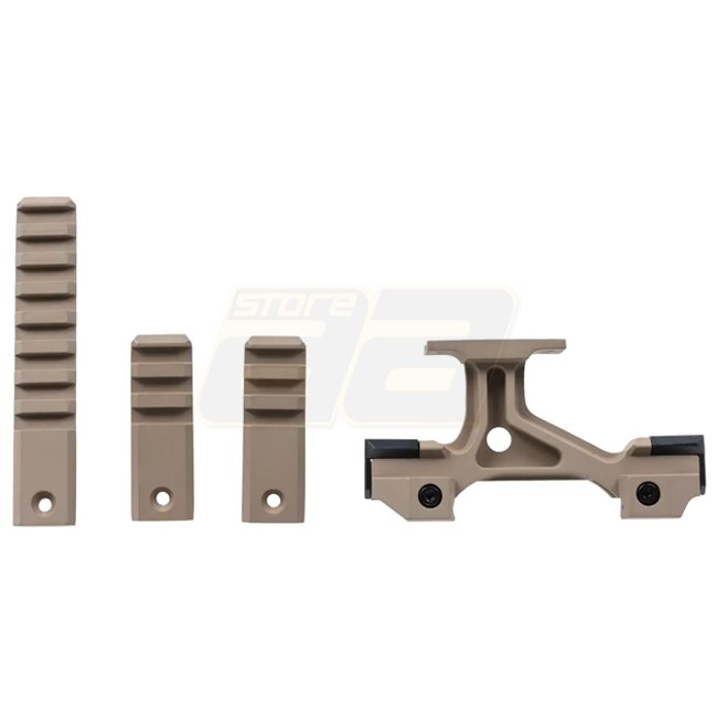 Die Wosport EX‑059 Montierung aus Aluminium bietet eine stabile Plattform für T2‑Leuchtpunktvisiere und kompatible Optiken. Der Montagewinkel ist für RIS/Picatinny‑Schienen ausgelegt und erlaubt durch den Abstand der Befestigungslöcher von 10 mm und 35 mm eine präzise Justierung. Drei zusätzliche Montageschienen erweitern die Konfigurationsmöglichkeiten für Zubehör. Trotz der robusten Ausführung bleibt das Gewicht mit 185 g moderat.