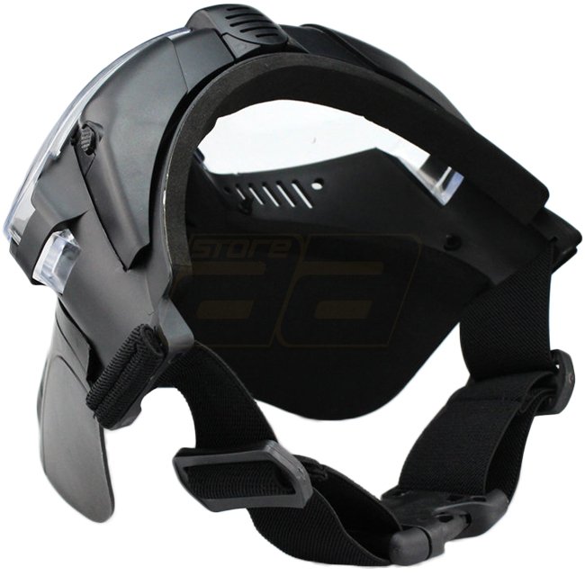 Bleiben Sie fogfrei und bequem mit der WoSport belüfteten Vollgesichtsmaske in elegantem Schwarz. Hergestellt aus haltbarem TPU mit einer klaren PC-Visier, verfügt diese Maske über einen eingebauten Ventilator, der von 2 AAA-Batterien (nicht enthalten) be