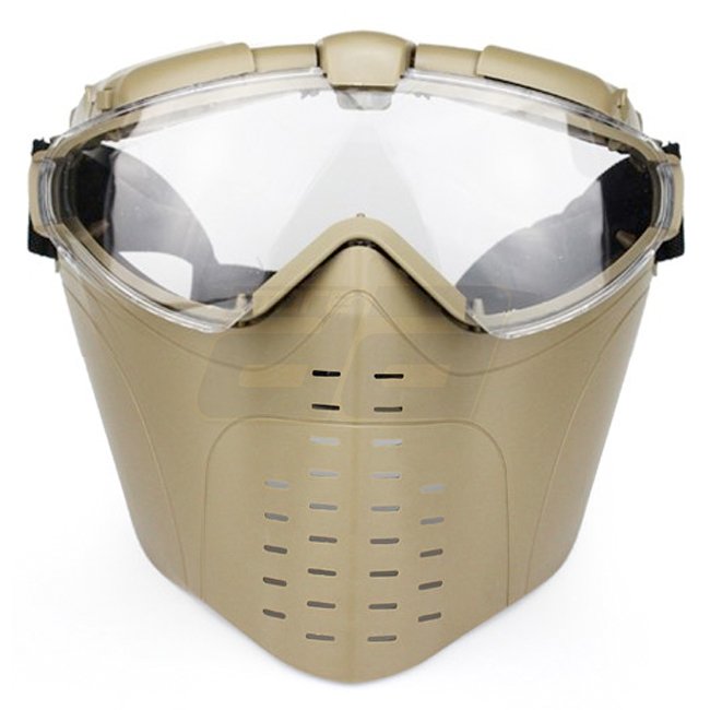 Bleiben Sie während intensiver Airsoft-Schlachten fog-free mit der WoSport ventilierte Vollgesichtsmaske in Tan. Die TPU-Maske mit einem PC-Visier verfügt über einen eingebauten Lüfter, der von 2 AAA-Batterien (nicht enthalten) betrieben wird.