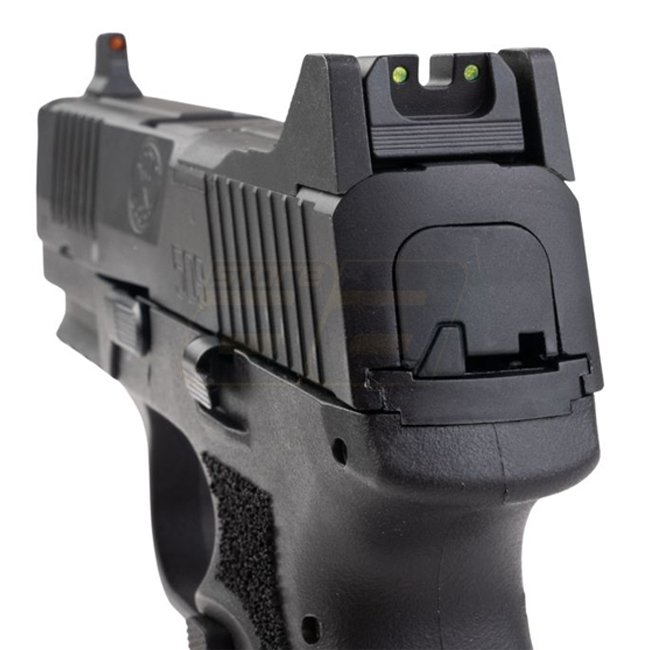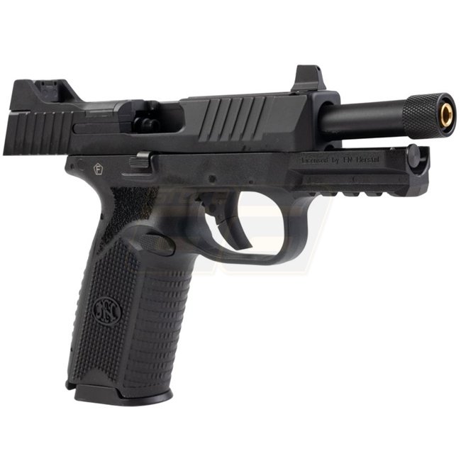 A metal slide combined with an ergonomic polymer frame ensures a stable, realistic shooting experience. Authentic FN markings and an optic-ready interface complete the visual appeal.