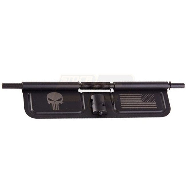 Dytac M4 GBBR Dust Cover Punisher - Black, made of steel, weighs 20g, compatible with M4/AR-15 GBBR rifles.