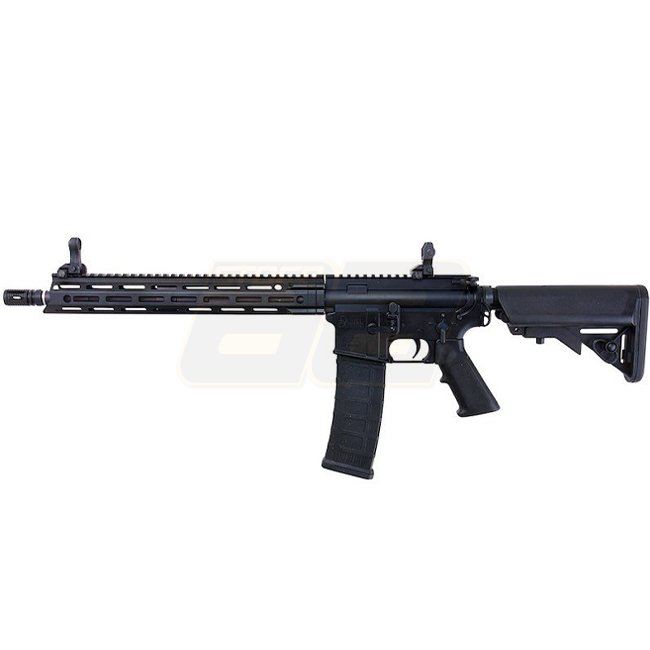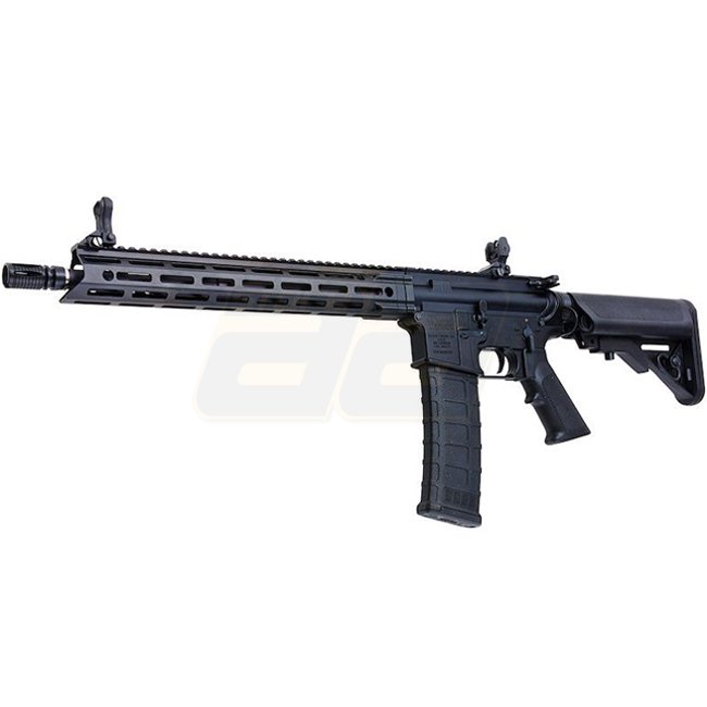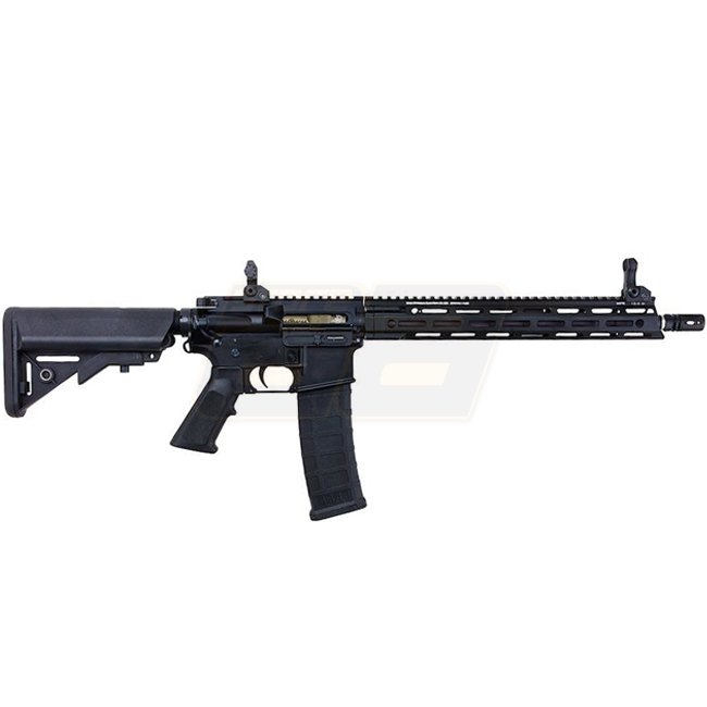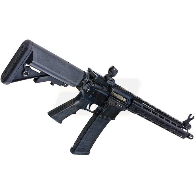 This black EMG DDM4 MWS 13.5 Inch Gas Blow Back Rifle is a powerful and versatile airsoft gun, featuring semi-auto & full-auto shooting modes, adjustable hop-up, and a magazine capacity of 40 (6mm). With a length ranging from 820-911mm, this rifle provide
