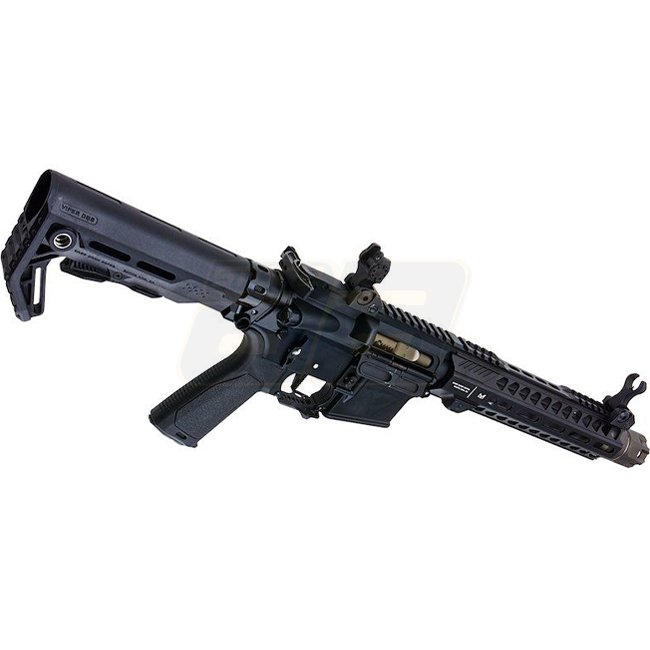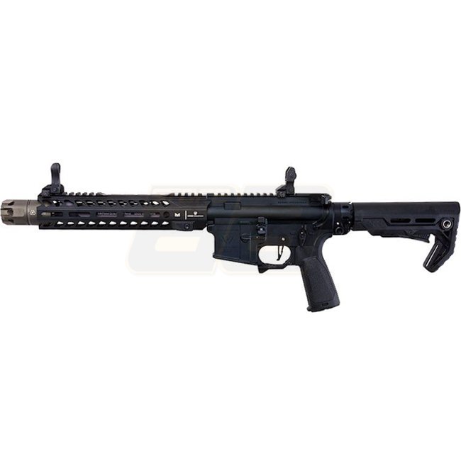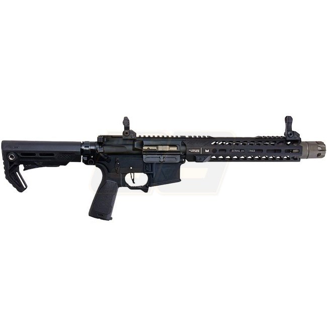 EMG Strike Industries Strike Tactical 10 Inch MWS Gas Blow Back Rifle - Black. Metal/polymer grip, 710-775mm length, 2390g weight, 250mm barrel, 14mm+ CW thread, 330-350 FPS velocity, Semi Auto & Full Auto mode, 45.27-48.02m range, Adjustable hop up. Pack