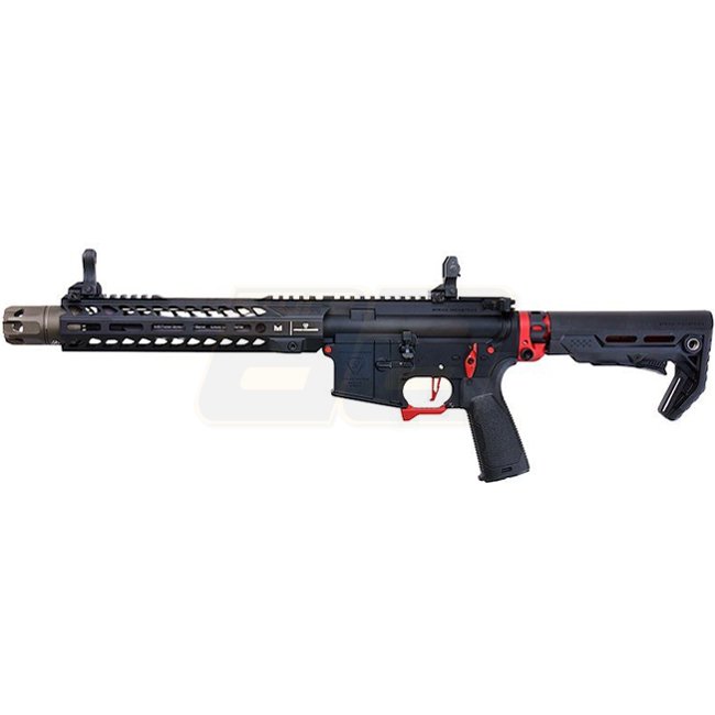 EMG Strike Industries Strike Tactical 10 Inch MWS Gas Blow Back Rifle - Red is a powerful and versatile airsoft rifle suitable for both close-quarters combat and long-range engagements. This rifle features a durable metal and polymer construction, a magaz