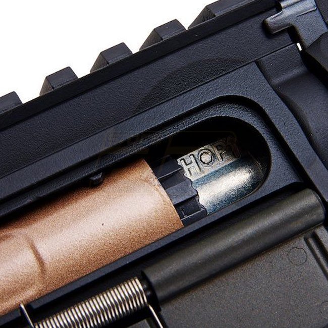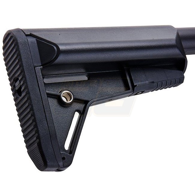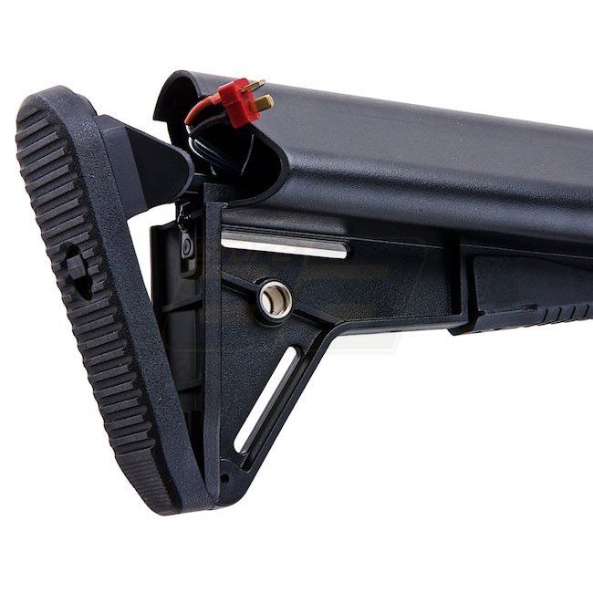 The functional bolt stop holds open provides quick and easy access to the Hop-Up for fine-tuning your shots. The reinforced V2 gearbox ensures robust performance and longevity as well as allowing you to upgrade it with the plethora of aftermarket parts available. At the same time, the Cyma Quick Buffer System (QBS) enables fast and effortless spring changes, allowing for on-the-fly adjustments to match your playing environment. Customize your shooting experience with the adjustable length of pull stock, catering to individual preferences and optimizing comfort and control. The neodymium magnet motor delivers impressive power and efficiency, ensuring reliable and consistent performance. Equipped with a waffle-textured magazine, the EMG TTI TR-1 M4E1 provides a secure grip and smooth feeding of BBs, keeping you in action without interruptions.