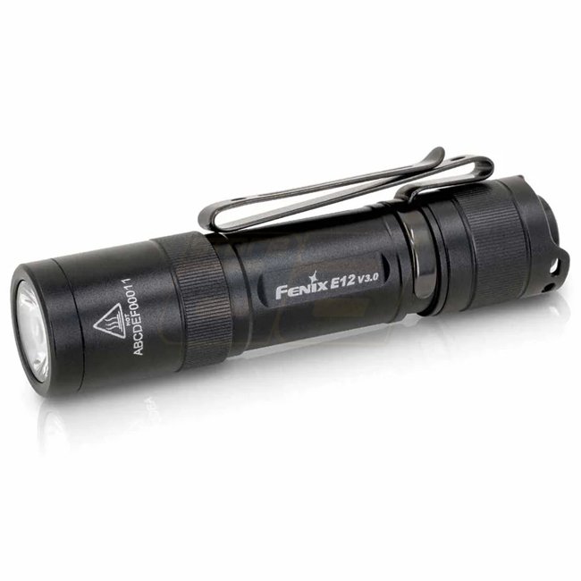 The Fenix E12 V3.0 runs on a single AA cell and outputs up to 200 lumens. It offers three brightness modes, memory function, and a magnetic tail switch. The housing is made of durable aluminum and rated IP68 for dust and water protection.