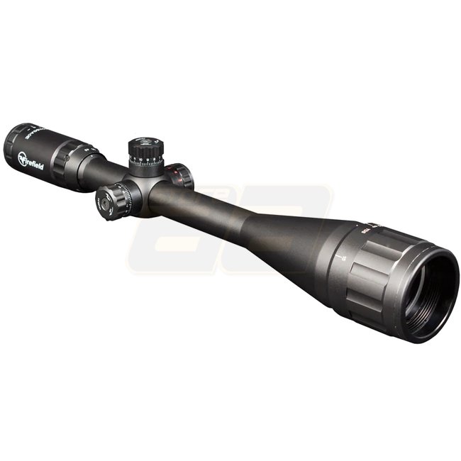 Firefield Tactical Riflescope with 10-40x magnification, Mil Dot reticle, and 1-inch tube diameter. Ideal for long-range shooting with IPX4 standard and aluminum housing. Weaver/Picatinny mount. Length 415mm, weight 879g, with 120 MOA max adjustments.