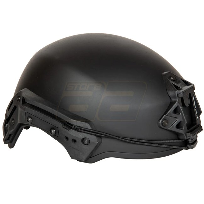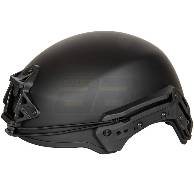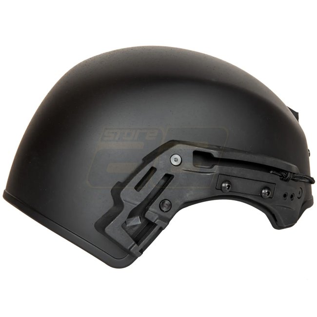 FMA EX Ballistic Style Helmet in Black, made of 5.5mm ABS plastic for impact, heat, and low temperature resistance. Size: 57-61cm, weight: 1000g. Includes helmet and velcro set.
