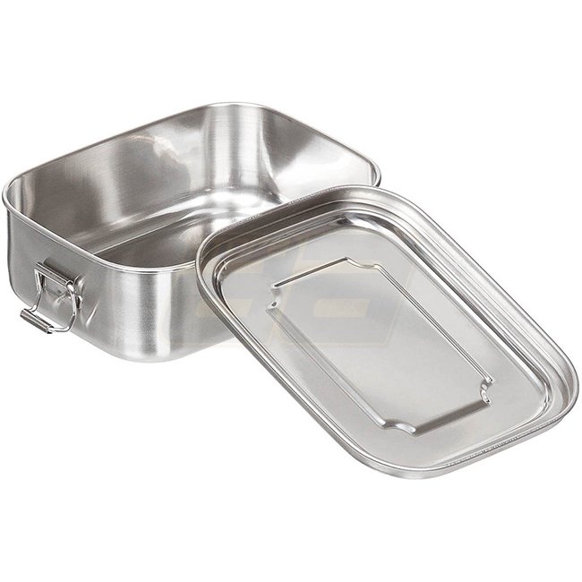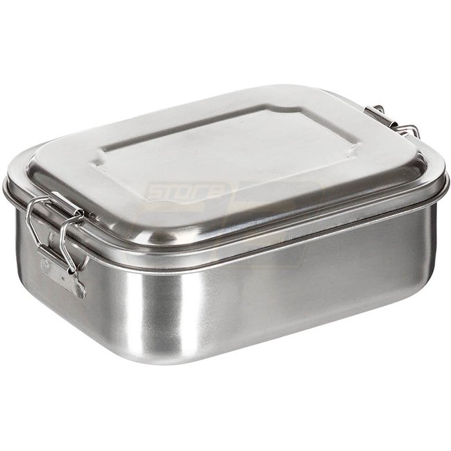 Compact FoxOutdoor Lunchbox measuring 16 x 13 x 6.2 cm. Lightweight, sturdy, and durable design with 2 lateral clips for secure closure. Features a snap-on lid and is dishwasher-safe, ensuring no odors. Offers a capacity of approximately 0.75 liters.