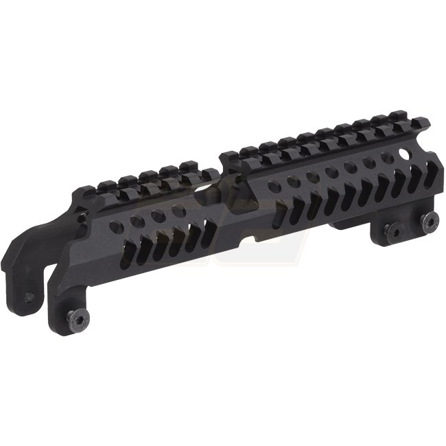 Garde-main supérieur 5KU B-31C en couleur noire. Longueur de 195 mm, fabriqué en aluminium léger (130 g). Conçu pour les modèles AK (à l'exclusion du PP-19 et de l'AKS74U) par LCT & GHK. Nécessite le garde-main inférieur 5KU B30 pour l'assemblage.